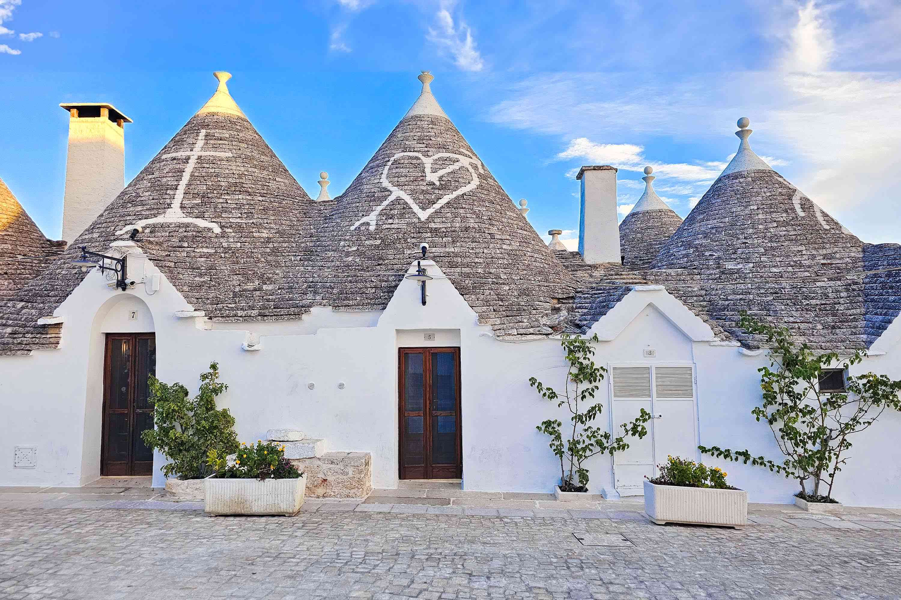 By midday, we’ll arrive in Alberobello, a charming town in the Puglia region famous for its unique trulli – distinctive cone-shaped houses that are a symbol of this area. The trulli are made of limestone and built without mortar, using a dry-stone technique that dates back to prehistoric times. These stone buildings have been designated as a UNESCO World Heritage-listed site since 1996. Once we arrive in Alberobello, we’ll learn about the origins of the 15th century buildings on a walking tour through the town’s historical centre.