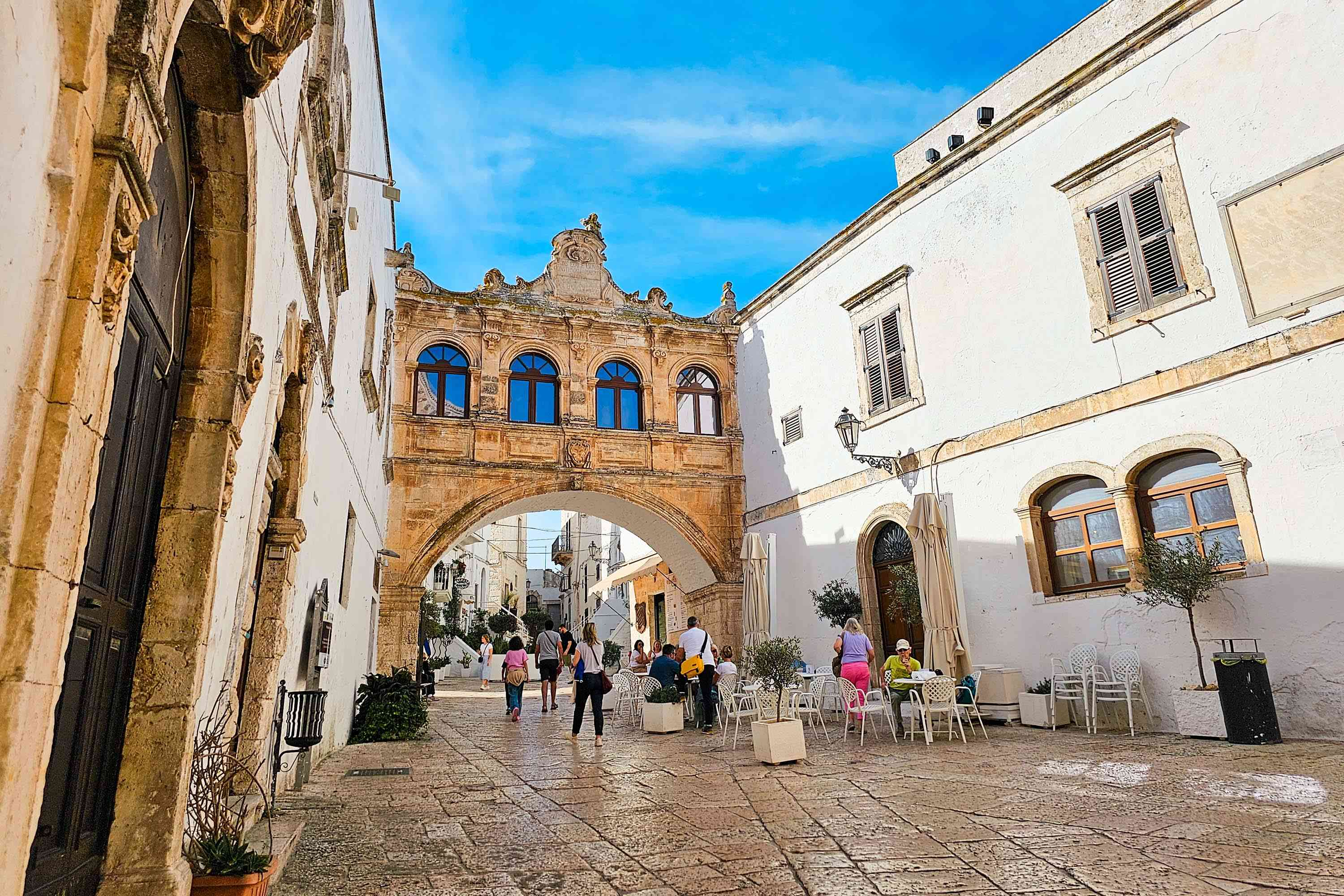 Our next stop for the day is the picturesque white town of Locorotondo, a delightful destination situated in the heart of the Puglia region. Taking a short stroll to reach the town centre, we will be able to view Locorotondo’s unique circular layout with pretty views out over its surrounding vineyards and olive groves. We’ll then stop at a local deli where we will have the chance to try some of its locally made products.