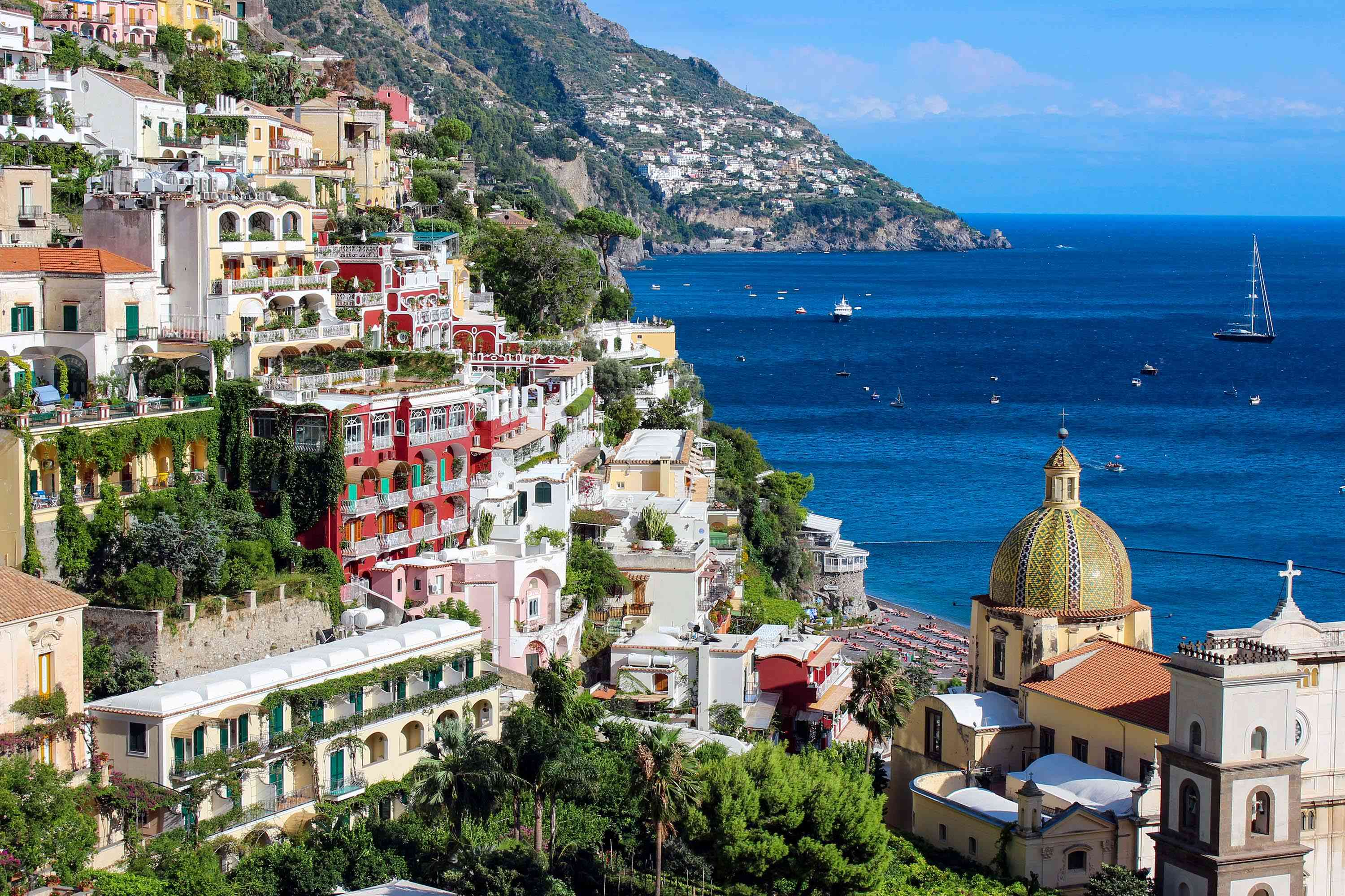 First, we’ll spend time in the small village of Positano, a seaside paradise famous for its colourful buildings that cling to the steep hill of the town and encircle a beautiful beach. Here, we’ll have free time to explore some of the pretty shops and cafés dotted along the steep but photogenic streets.