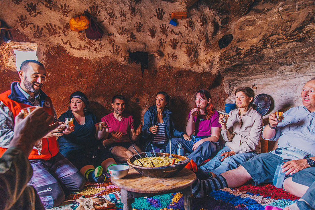 This morning, take a short drive into the High Atlas Mountains to the village of Imlil. When you arrive, store your main luggage and load your overnight bags onto pack mules. Make the 1-hour trek to the peaceful village of Aroumd. Perched on a rocky outcrop, the remote village offers stunning views across the High Atlas Mountains and a unique opportunity to experience traditional Amazigh culture. Spend the night in a family-run mountain gite where, surrounded by the smell of woodstoves and bread, you’ll enjoy traditional hospitality and homecooked food. Use the rest of the day to explore the village and the surrounding farmlands. If the group is up for it and weather permits, there will be a chance to hike to the pilgrimage shrine of Sidi Chamharouch (approximately 4 hours return). Regardless of your fitness levels, the gentle pace of Aroumd makes it a special place to explore beyond the reach of the modern world.