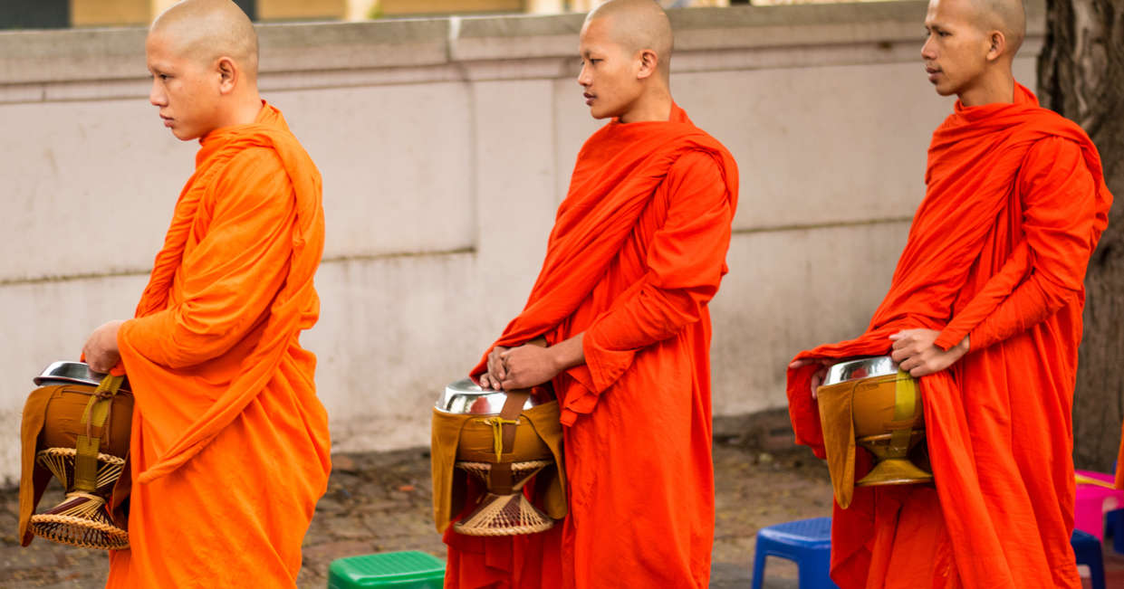 Early morning, there is the chance to witness the alms giving of Luang Prabang. The alms-giving ceremony is a serene daily ritual where locals and visitors offer food to rows of saffron-robed monks at dawn, symbolizing generosity and spiritual reflection.