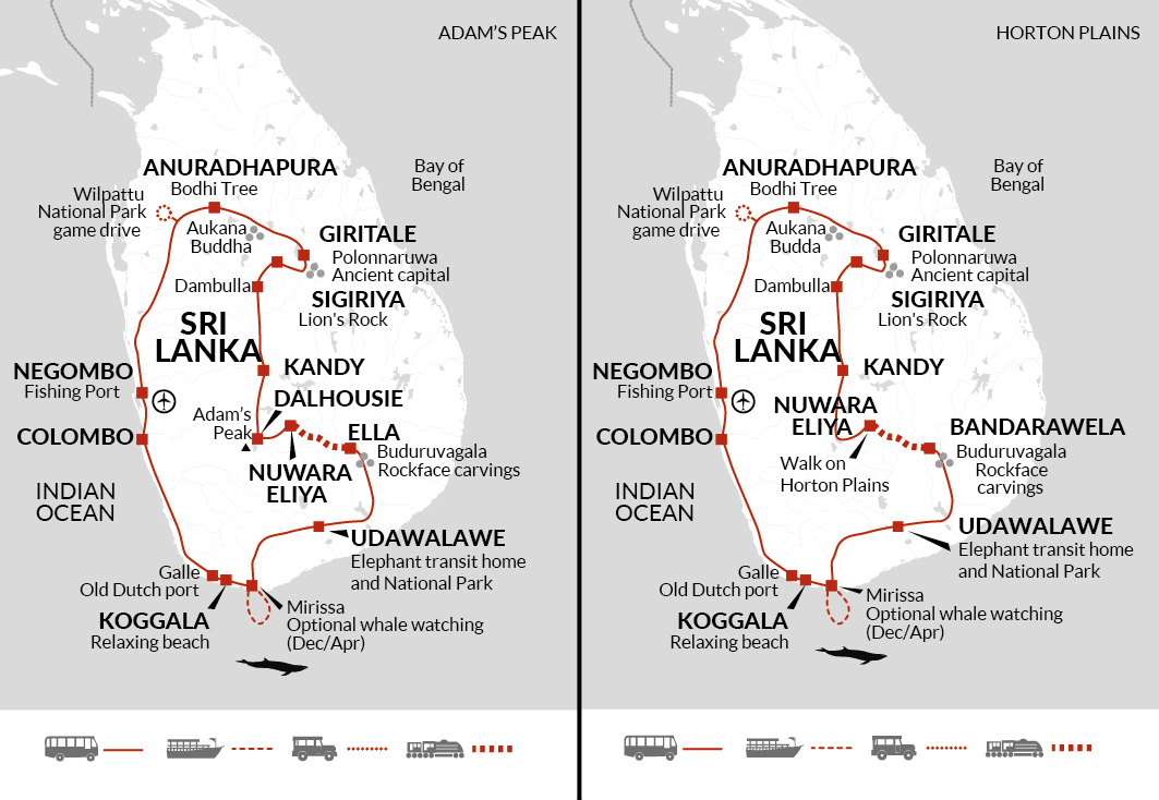 Explore Sri Lanka's many highlights at a relaxed pace on this two week adventure|Discover a mix of ancient cities, gilded Buddhist temples and lush mountain landscapes|4WD jeep safaris in search of leopard, elephant and birdlife in National Parks