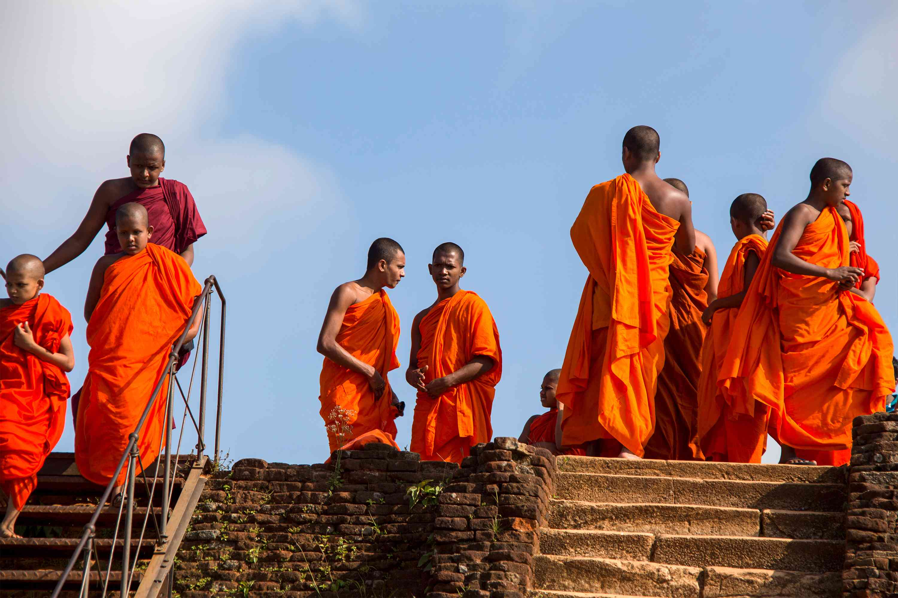 We depart our hotel early this morning to visit Sigiriya. Braving the spiral staircase, we’ll see the 21 frescoes of female nature spirits, known as Apsaras, painted beneath an overhang about 90 metres up the rock. These frescoes are beautiful – still boasting vibrant colours even after 1,500 years. Just above them, a wall adorned with 1,000-year-old graffiti and poetry serves as a testament to visitors who recorded their impressions of the painted women. Reaching the summit after climbing 1,200 stairs, we are rewarded with breathtaking views over the Sri Lankan jungle below and intriguing remnants of a once-thriving kingdom.