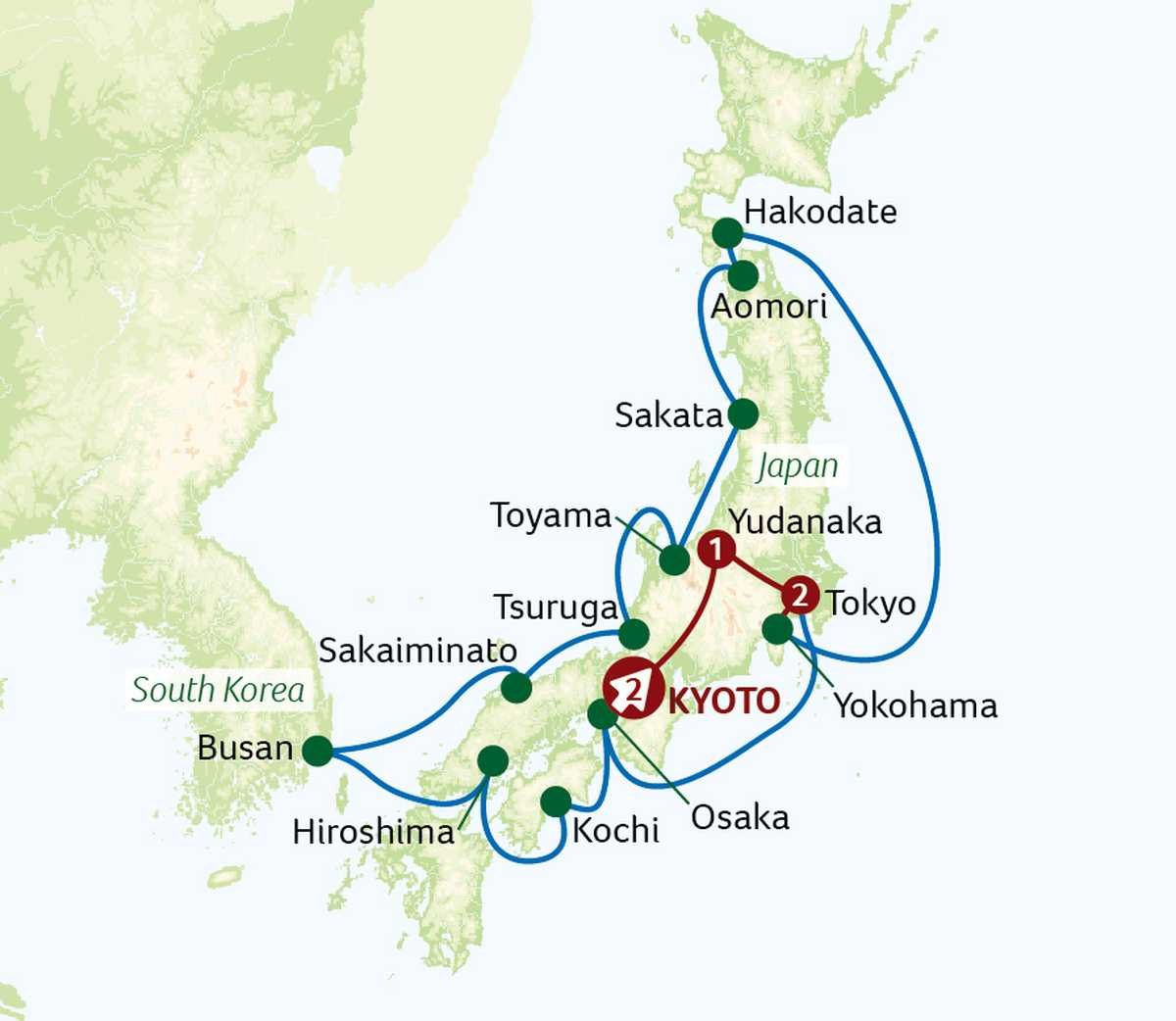 Japan is a scenic and cultural treat at any time of the year but in springtime, with the chance to see the famous cherry blossoms in bloom, it’s perhaps at its prettiest. Against this beautiful backdrop, we’ll tour Japan and experience its unique culture and scenic contrasts. We’ll join rituals and ceremonies, watch snow monkeys at play, speed across country by futuristic bullet train and be awed by the ultra-modern capital. After that we’ll slow the pace on a luxury two-week cruise circumnavigating Japan and her islands, hopping between historic ports and maritime towns with plenty of time for relaxation, exploration and enjoying life on board.