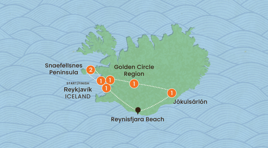 Hope you’re keeping your eyes peeled – this eight-day trip is going to take you halfway to Valhalla. You won’t want to miss a thing. Start the journey in Reykjavík and delve into the wonders of the gods: awe-inspiring waterfalls, next-level national parks, gobsmacking glaciers and a *giant* geyser. There’s more... Get all the local eats, insider info on fascinating folklore, and see Northern Lights magic happen right in front of you, if you’re lucky. Ready to delve in deep? Let’s go!