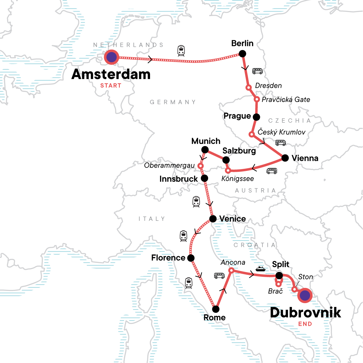 Check out the Imperial Palace of Innsbruck before piling back onto the train to head into epic scenery of the Dolomites. Think filling your feed with crystal clear mountain lakes and snow-capped peaks. Don't forget that Venice is the end goal of today so pump yourself up for the famous canal city on the horizon. Tonight join your CEO for a nice cold beverage and see where the night takes you.
