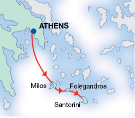 Visit the unique islands of Milos, Folegandros, and famous Santorini to explore the streets and experience first hand the warm and welcoming people of the smaller islands. See the spectacular churches, villages, marble museum and admire the famous Santorini sunset. This is suggested itinerary for independent travelers which includes accommodation in standard (3 to 4 star) class hotels- all rooms with private facilities, all transfers and all ferry services.