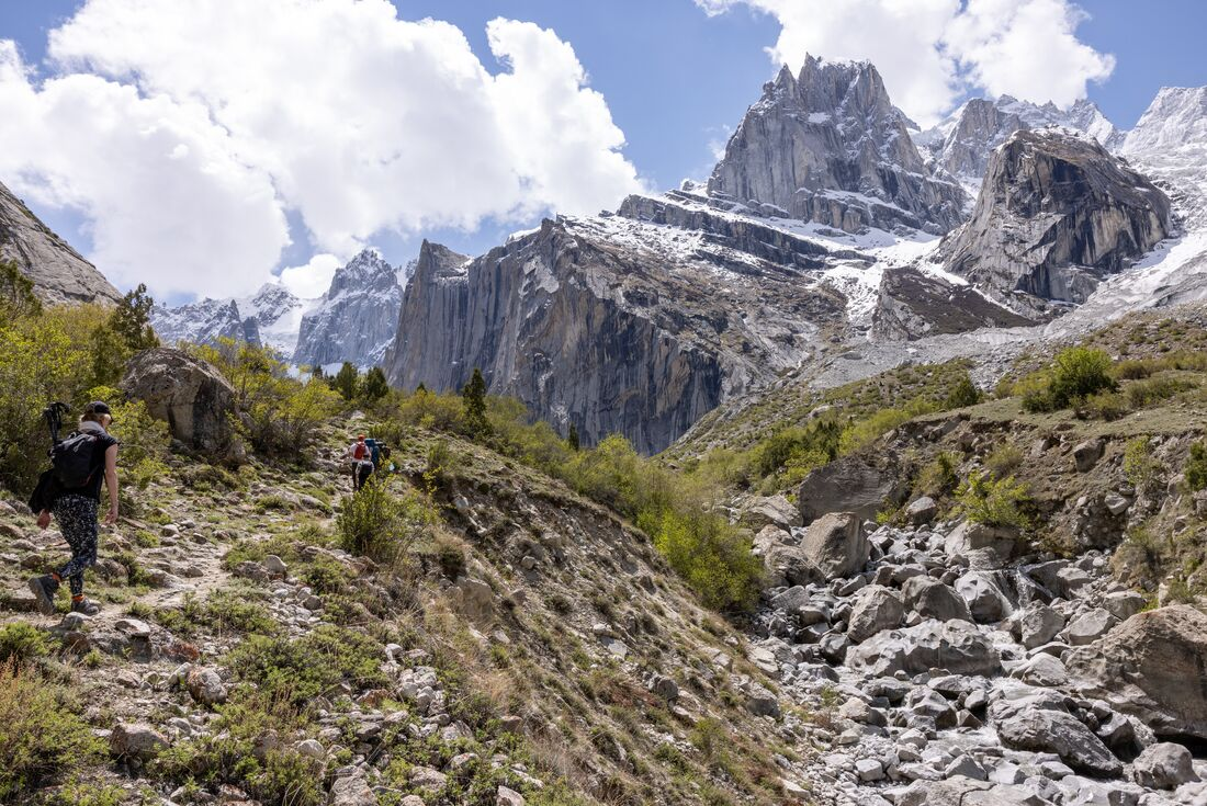 Check in with your feet this morning and decide how you’d like to spend the day. Opt to take a day hike to Amin Brakk base camp (4590 m/15058 ft), at the base of the towering rock face that’s known as one of the most spectacular climbs in the world. Start with a steep climb and continue on a relatively flat plateau, before the final, steep push through a rocky trail. You will either cross a water stream or take an alternate path that involves climbing over stones and boulders. While at the base camp, enjoy some free time for your own exploration before tucking in to refreshments and tracking your own steps back to Nangma campsite. Or if you’d rather lay low, choose to kick back and relax at camp. Either way, you won’t want to miss the sunrise from up here. If you choose to stick close to camp for the day, test your scrambling skills on nearby rocks or go on a scavenger hunt for local Karakoram bird and flower species.