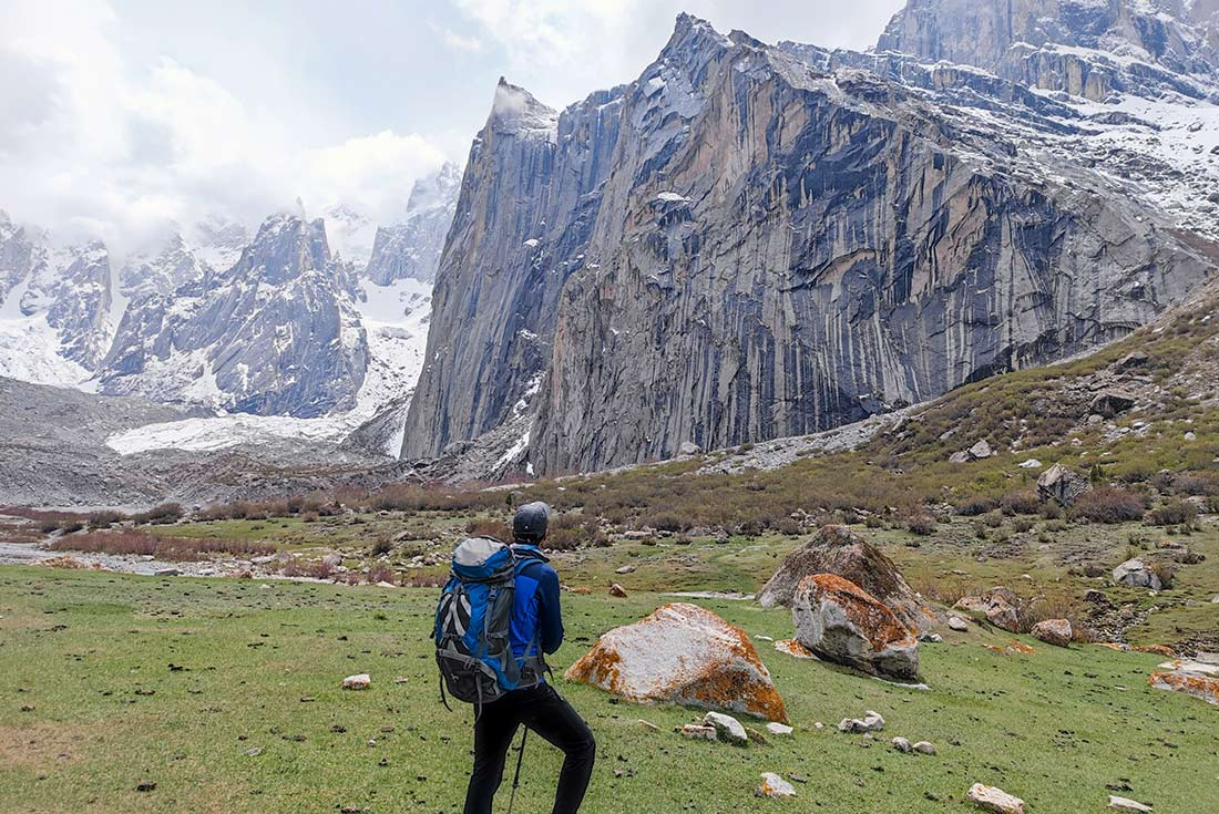 Fuel up on a hot breakfast, then carry on from Mingulo Broq to Nangma Valley, passing through lush green fields alongside a glacial stream. Today’s trek is relatively flat, crossing over one stream and through another. You’ll arrive at the Nangma Valley campsite by lunch, where you can tuck into a fresh, hot meal. Enjoy some free time to take in the incredible views – looking out over the valley, you’ll see the North Ridge of Shingu Charpa. For dinner, tuck into another hot meal of local soup and a mix of regional and continental Chinese and Pakistani dishes.