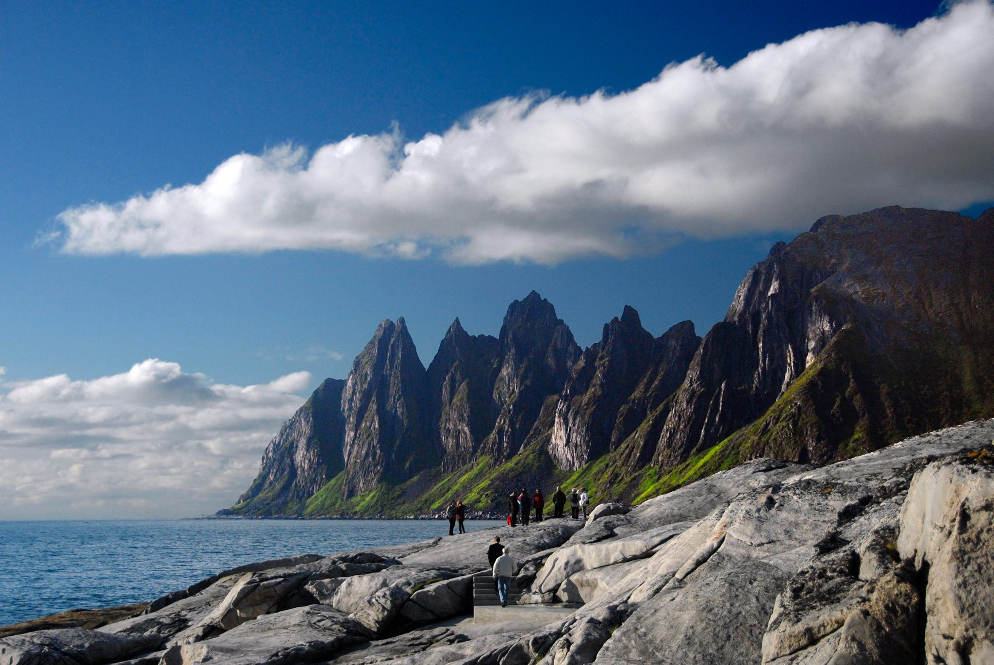 The road from Tromsø via Senja to Reine in Lofoten can easily be rated as one of the most picturesque summer drives in all of Norway. The stretch is connecting numerous larger and smaller islands of the outer North Norwegian coast, and does not pass over any of mainland Norway. You could call it island-hopping by car. The drive includes two ferry crossings and several bridges and underwater tunnels.
