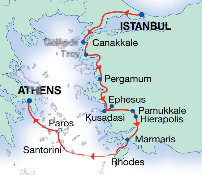 Turkey and Greece's close geographical location provides a wonderful opportunity for travellers to visit both countries on the same trip, from the historical sites of Turkey to the beautiful beaches of the Greek Islands. Our Turkey & Island Hopper tour combines Istanbul, the capital of the Roman, Byzantine, and Ottoman Empires; the ancient port city of Ephesus; the mineral-rich thermal waters and white travertine terraces of Pamukkale; and Anzac Cove at Gallipoli with the must-see Greek islands of Rhodes, Santorini, and Paros, and Greece's capital, Athens.