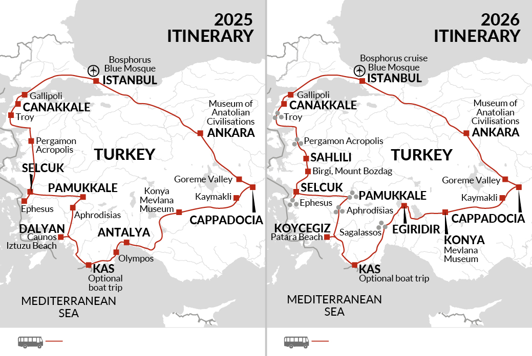 Explore Turkey's highlights on this comprehensive two week trip|Visit famous Greco-Roman sites, enjoy vibrant cities and relax on the stunning coastline|Discover Cappadocia's unusual landscape, underground cities and rock-cut churches