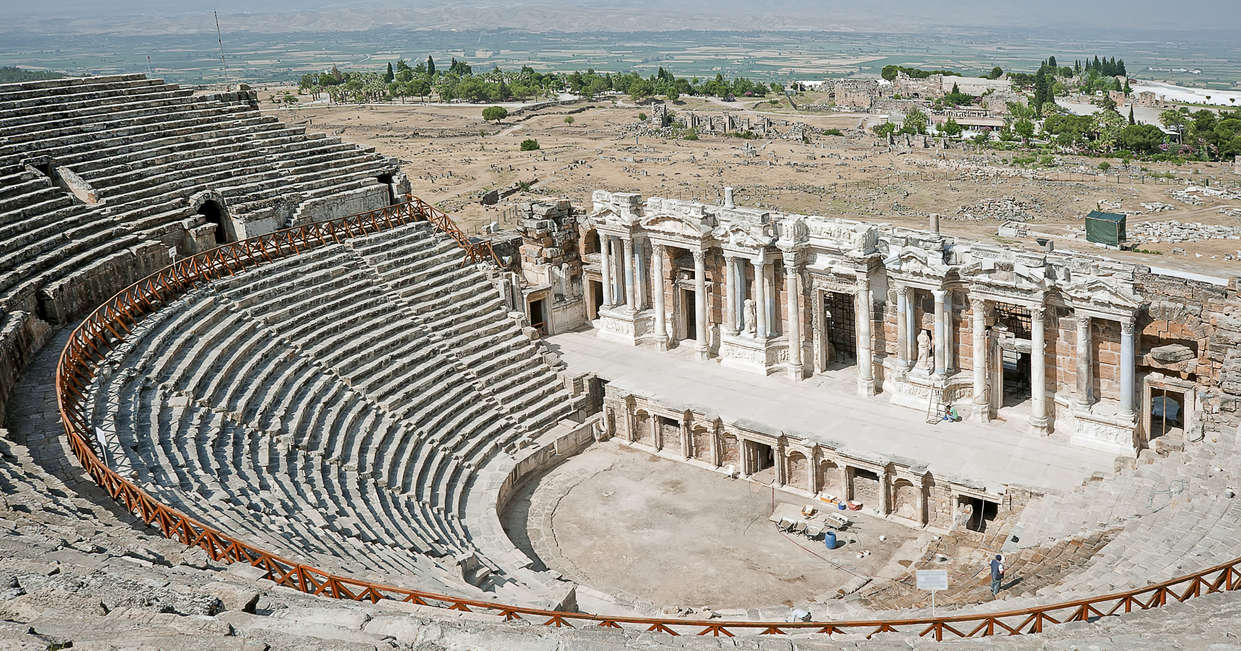 Once visited by Mark Anthony and Cleopatra, and by St. Paul, inspiring the Epistle to the Ephesians, this seaport reached its zenith in the 2nd century AD, becoming one of the main cultural and economic centres of the ancient world. It boasted a gymnasium and a stadium with seating for 70,000 spectators. Other highlights include the Baths of Constantine, the brothel, the Temple of Hadrian with its beautiful facade, the theatre (a giant with 24,000 seats) and the odeon (a 2,000-seat music and poetry centre), the Arcadian Way (where Cleopatra entered from the harbour) and the Marble Avenue featuring the Library of Celsus.