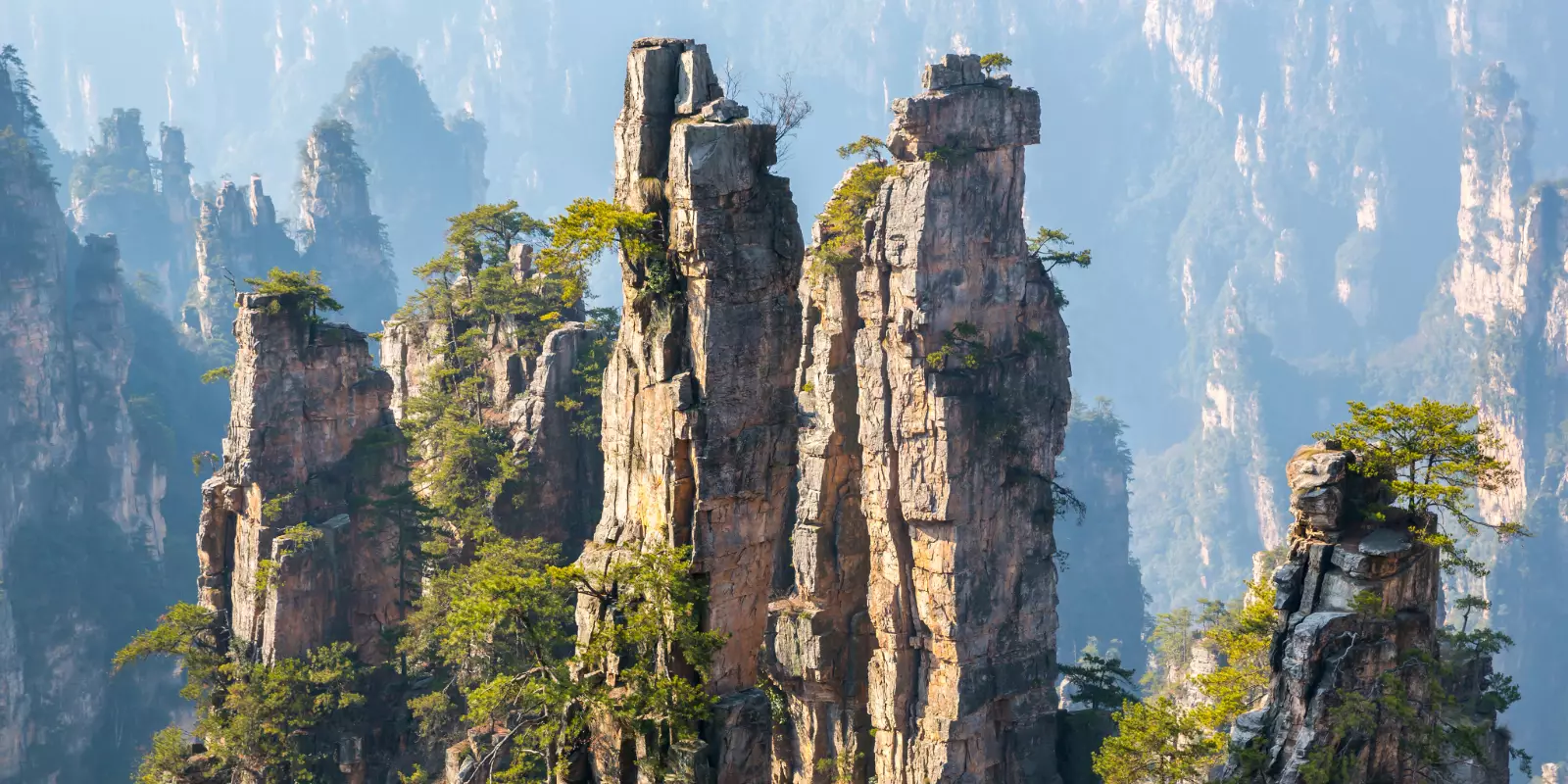 Zhangjiajie's forest of towering sandstone pillars is nature at its most surreal. Ride the Bailong glass elevator skyward, soak up the incredible views before a scenic train through the Ten-Mile Natural Gallery.