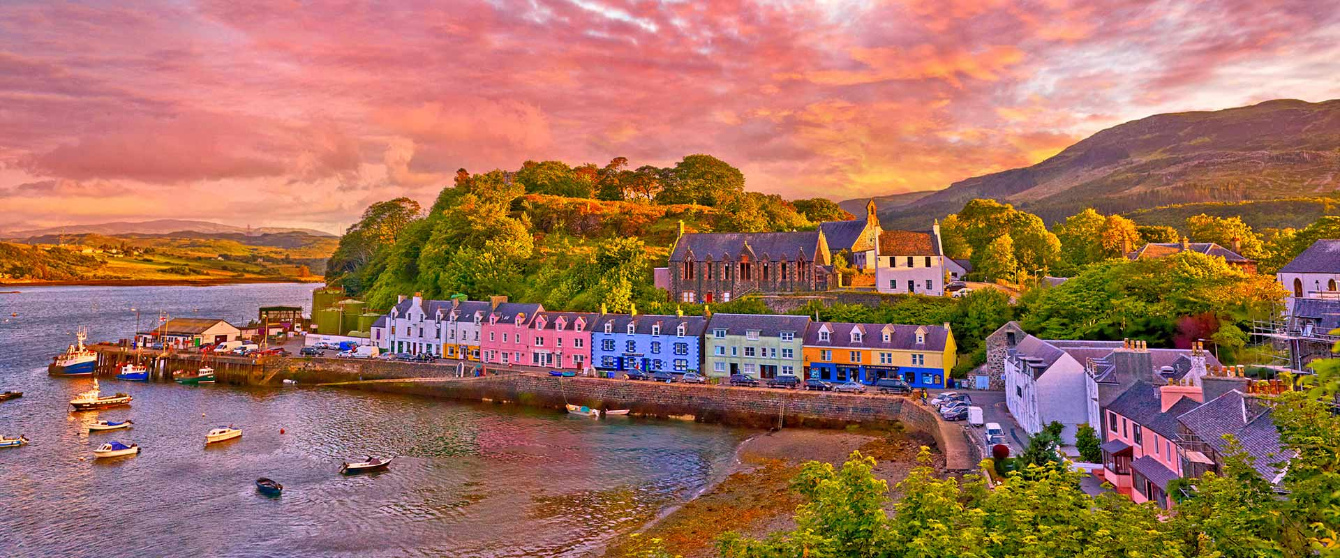 Welcome to Portree, a picturesque harbour town on the stunning Isle of Skye. Fishing boats bob gently in the harbour, which is lined with candy-coloured buildings. Explore the quaint streets and boutique shops, cosy cafés, and traditional pubs that offer a taste of local hospitality. Take in breathtaking views of the surrounding rugged landscape and majestic Cuillin Mountains.