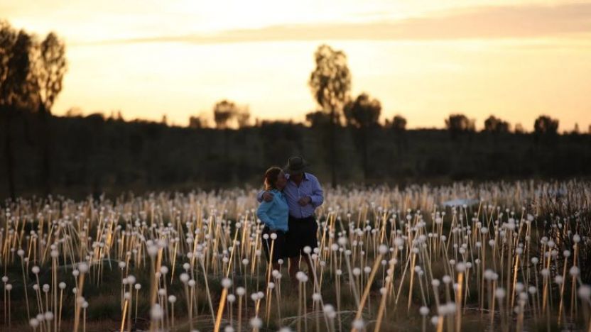 A short drive to the exclusive Field of Light location. With just enough time for some background commentary on the internationally renowned artist Bruce Munro, you will arrive to see his artistic endeavour. In complete darkness this Field of Light will be etched in your mind forever. Walk through the field of 50,000 spheres of light at your own pace and then make your way to the top of a large sand dune to the Field of Light sunrise viewing area. The site is dark, so to ensure you make the most out of your Uluru experience, we recommend you use your phone light or bring a small torch to help navigate your way on the pathway provided.
