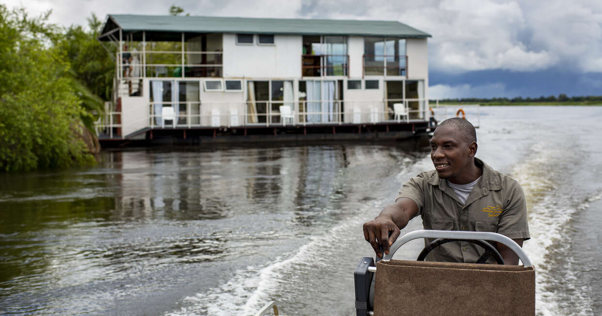 Departing after breakfast, we'll drive up the west side of the Okavango Delta panhandle to Shakawe, where we'll leave our vehicle behind and board a motor launch to our houseboat. On arrival, we'll meet our friendly crew who will be our hosts for the next two nights. After settling in, lunch is served in the top-floor dining room, with panoramic windows offering a backdrop of the Okavango River basin.