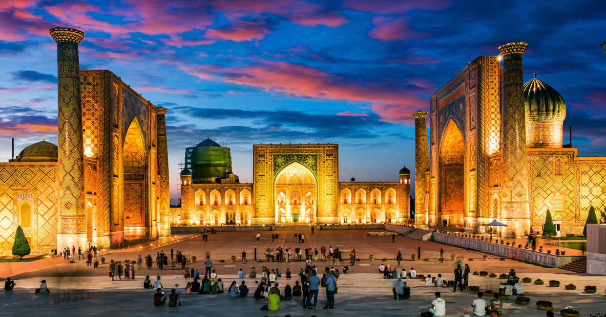In the evening, we start exploring Samarkand by visiting the majestic Gur-e-Amir (in Persian, Tomb of the King) mausoleum and the final resting place of Amir Temur. Finally, we head to the iconic Registan Square to enjoy a show of lights over its exceptionally patterned madrassahs.