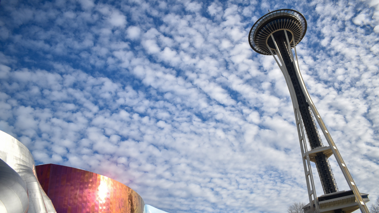 Spend time with your guide exploring the complex. Pass by the Chihuly Glass and Garden, where a selection of American artist Dale Chihuly’s large-scale blown glass sculptures rise from the ground and hang from the air. Another eye-catching site you’ll come across is the wavy metallic walls of the Museum of Pop Culture (MoPOP). Designed by Frank Gehry, this building offers exhibits devoted to beloved pop culture phenomena, everything from science fiction and fantasy to local sports and music names like Nirvana.