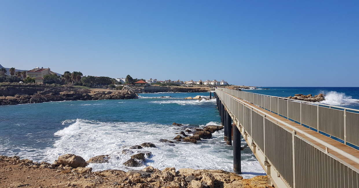 We start our day with a short drive to the neighbouring village of Lapta, where we have a gentle stroll along a three kilometre (two mile) coastal walkway. The path is paved all the way along and winds its way through a small fishing port and then hugs the coast, part of the walk is built over the ocean itself. We'll finish up at a small cafe with wonderful views looking back towards Kyrenia and the entire northern coast of Cyprus, with the backdrop of the Besparmak Mountains providing a natural barrier to the rest of the island.